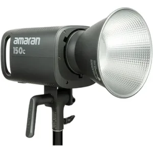 A powerful point-source light that combines RGBWW full-color control and Bowens mount versatility, the gray 150c RGB LED Monolight from amaran is a variable color temperature light fixture ideal for filmmakers, photographers, and creators. You get modifiability for magnified or diffused output and full-color control throughout its expanded 2500 to 7500K CCT range. Featuring highly accurate color reproduction, the 150c also ensures high-quality light output with up to 15,610 lux at 3.3′ using its included reflector. The 150c provides nine built-in special effects for paparazzi, fireworks, lightning, faulty bulb, TV, pulsing, strobe, explosion, and fire. You can find the right level of illumination for your scene with 0 to 100% stepless dimming.