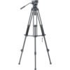 - Aluminum tripod with fluid pan and tilt head and floor spreader