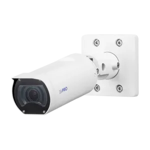 The camera’s lens features a 2.5x motorized optical zoom with motorized focus, and an extra optical zoom of 2.5x – 3.8x when the resolution is 1280×720. Its focal length spans 2.9 mm – 7.3 mm {1/8 inches – 9/32 inches}. The angular field of view in 16:9 mode ranges from Horizontal: 43° (TELE) – 100° (WIDE) and Vertical: 24° (TELE) – 56° (WIDE). In 4:3 mode, it covers Horizontal: 32° (TELE) – 74° (WIDE) and Vertical: 24° (TELE) – 56° (WIDE). The maximum aperture ratio varies from 1:2.0 (WIDE) to 1:3.0 (TELE), with a focus range of 1 m {39-3/8 inches} to infinity. The DORI (Detect, Observe, Recognize, Identify) specifications are: Detect at Wide: 32.2 m / 105.7 ft, Tele: 97.5 m / 319.8 ft; Observe at Wide: 12.9 m / 42.3 ft, Tele: 39.0 m / 127.9 ft; Recognize at Wide: 6.4 m / 21.1 ft, Tele: 19.5 m / 64.0 ft; and Identify at Wide: 3.2 m / 10.6 ft, Tele: 9.7 m / 32.0 ft.