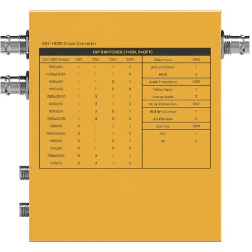 The SC2030 features one HDMI output and two 3G-SDI outputs, controllable via selectable conversion modes accessed by DIP switches, providing you with a variety of modes to fit your needs. It can also be controlled using a Windows computer with AV Matrix software via the micro-USB port, which is also used to power the unit. Dual threaded locking connectors allow you to power the unit with external power supplies for redundancy.