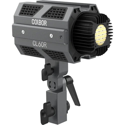 xThe compact and lightweight Colbor CL60R RGB COB LED Monolight by COLBOR is highly portable. This LED video light boasts an extensive color temperature range of 2700-6500K and an impressive CRI rating of 97+, ensuring precise color rendering. Alongside this wide color temperature range, the CL60R can produce a multitude of colors in HSI mode. You have full control over light intensity, adjustable from 0 to 100%. While local control of color and brightness is possible directly on the fixture, the Dynamic Matrix Control feature enables wireless control of the CL60R and up to 9 other individual or grouped CL60Rs using your smartphone.