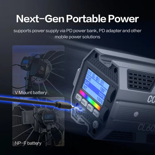In the video lighting sector, the COLBOR CL60R, along with its counterparts, the CL60 and CL60M, stands out as a frontrunner, providing a studio-quality experience for image creation. Its power source versatility includes the option to charge it with a PD power bank, PD adapter, or mobile power solutions like V-mount or NP-F batteries.