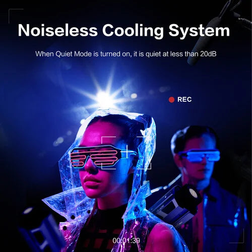 The Hummingbird-Intelligence Cooling System operates to maintain the fixture's temperature at an appropriate level. When the Quiet Mode is activated, the noise level is reduced to below 20 dB.