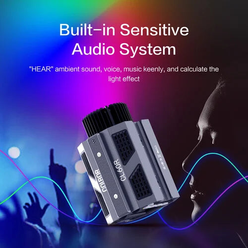 The CL60R LED video light is equipped with a sensitive audio system, enabling it to detect ambient sounds, voices, and even music, and then dynamically adjust its lighting output accordingly. This functionality contributes to creating a lighting environment that closely matches the audio, fostering a distinctive audiovisual experience.