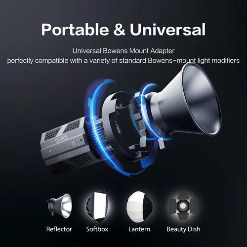 The COLBOR CL 60R LED video light offers extensive adaptability, accommodating a wide range of standard Bowens-mount light modifiers.