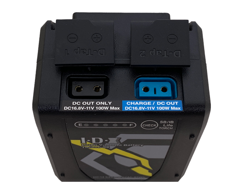 Despite its small form, the Imicro-98 provides two D-Tap outputs, one of them being an IDX D-Tap Advanced output that can alternatively be used to charge the battery. This advanced output supports D-Tap chargers such as the optional IDX VL-DT1, which is a portable charger. Otherwise, any IDX Endura V-mount battery can be used.
