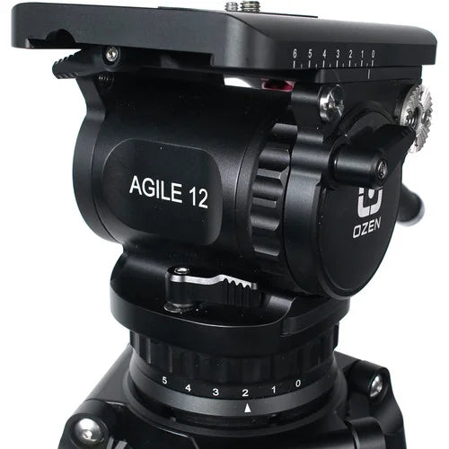 Smooth your pans and tilts with the Agile 12 Fluid Head from OZEN.OZ-12CF is Designed for fast setup in ENG- and EFP-style shooting scenarios, the OZ-12CF Agile 12 is equipped with a CNC-machined dial mechanism for crisp, repeatable counterbalance adjustment in 10 steps. The Agile 12's versatile design enables you to quickly change camcorder configurations within a payload range of 4.4 to 30.8 pounds.