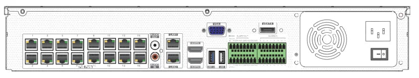 - 16 PoE Ports: Allows for direct connection and power supply to IP cameras via 16 PoE ports, simplifying the setup and reducing the need for additional wiring.